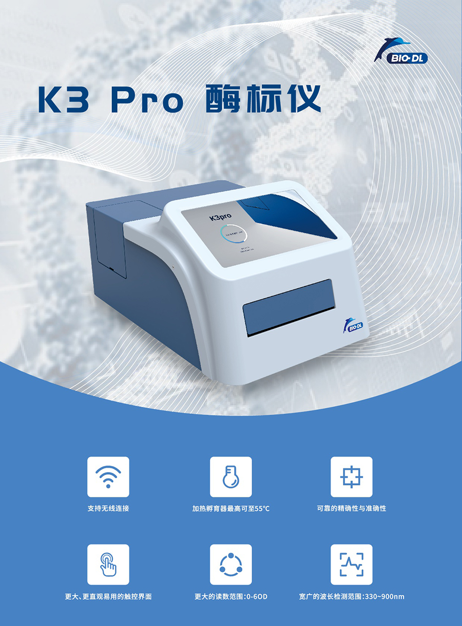 K3 Pro是一款性能可靠、功能強大、應用靈活的新型酶標儀,可以準確測量微孔板中樣品的吸光值,最多可同時配置8塊濾光片,檢測波長范圍340-850nm,更有孵育和震蕩功能以應對復雜的實驗檢測條件。10寸大屏觸控,圖像化操作界面,直觀易上手,能夠滿足多種實驗室的檢測需求。